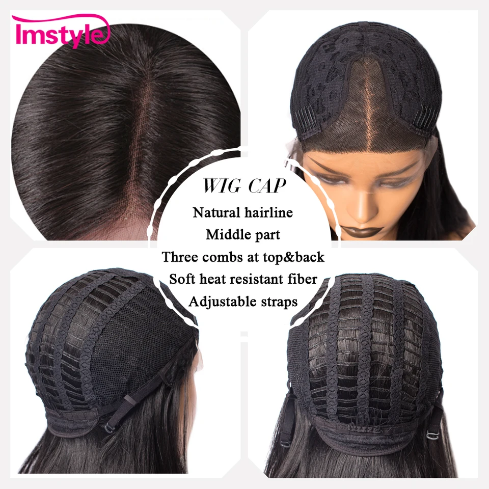 Imstyle Black Wig Straight Synthetic Hair Lace Front Wigs For